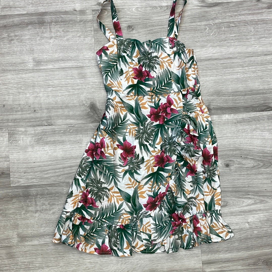 Kori America Tropical Printed Ruffle Wrap Mini Dress