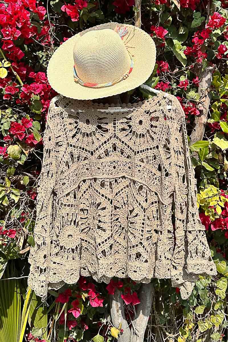 POL One Size 3/4 Sleeve Crochet Crop Top