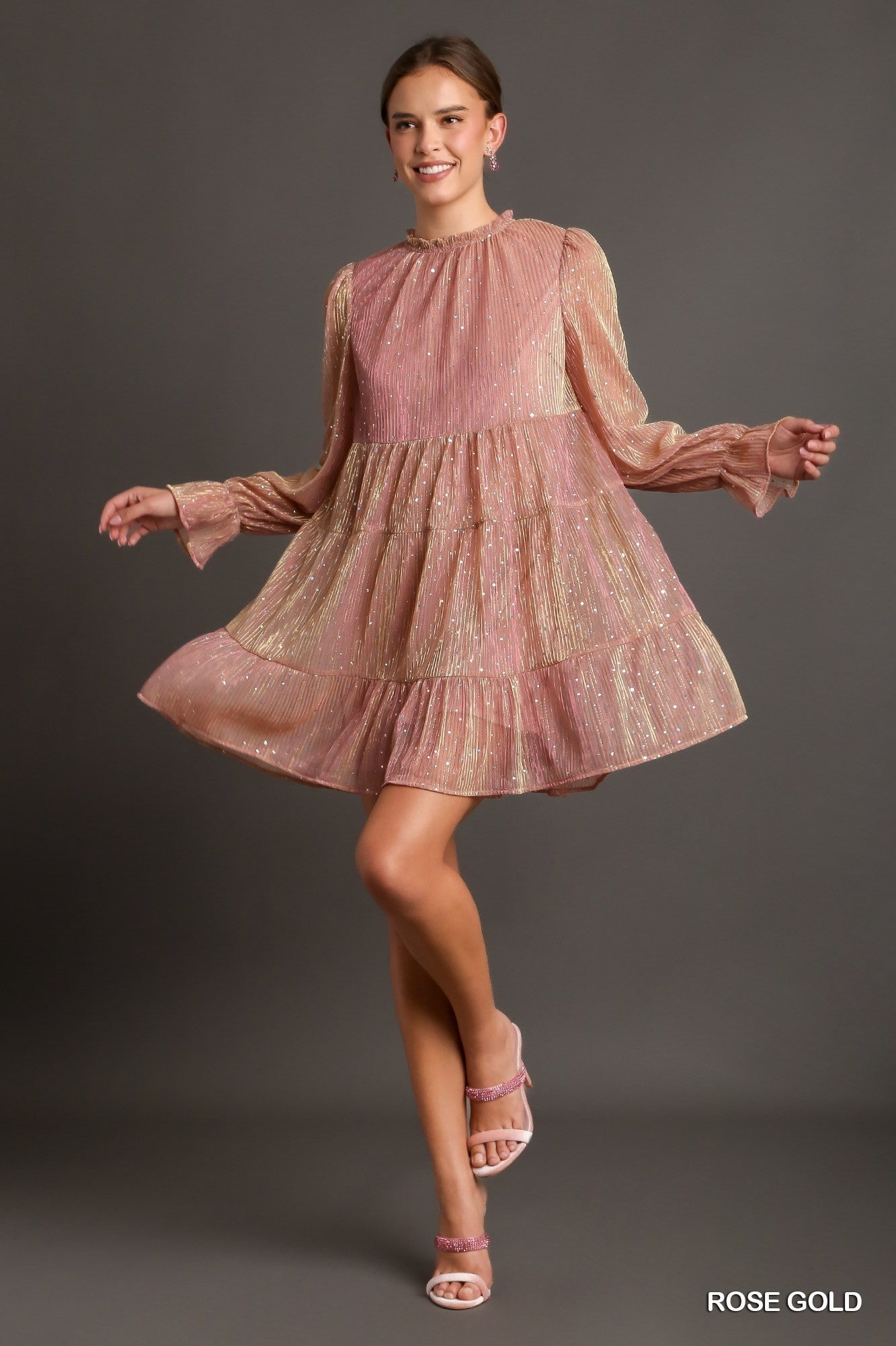 Umgee Rhinestone Embellished Tiered Metallic Mini Dress