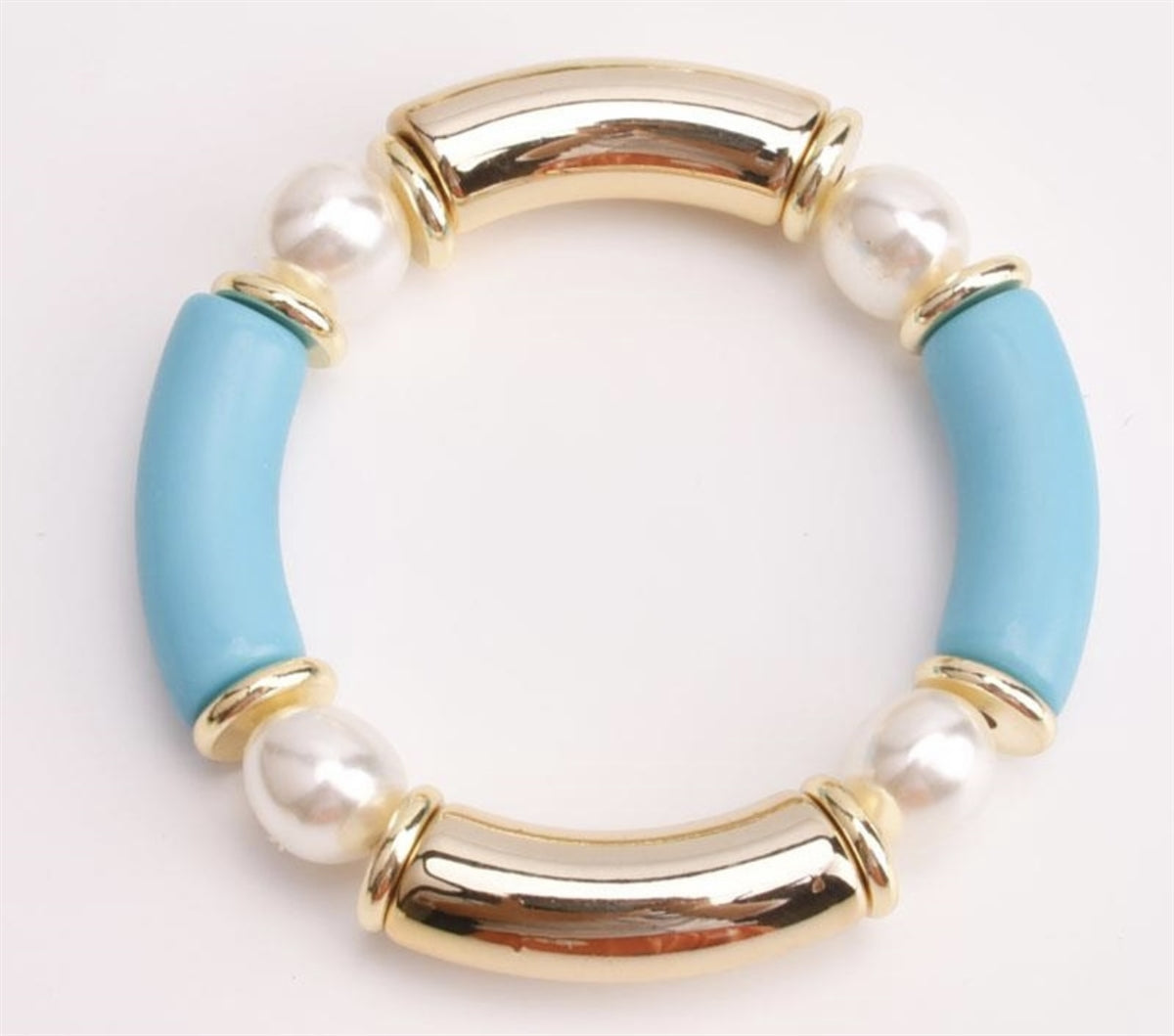 What's Hot Blue Pearl Bamboo Tube & Gold Stretch Bracelet