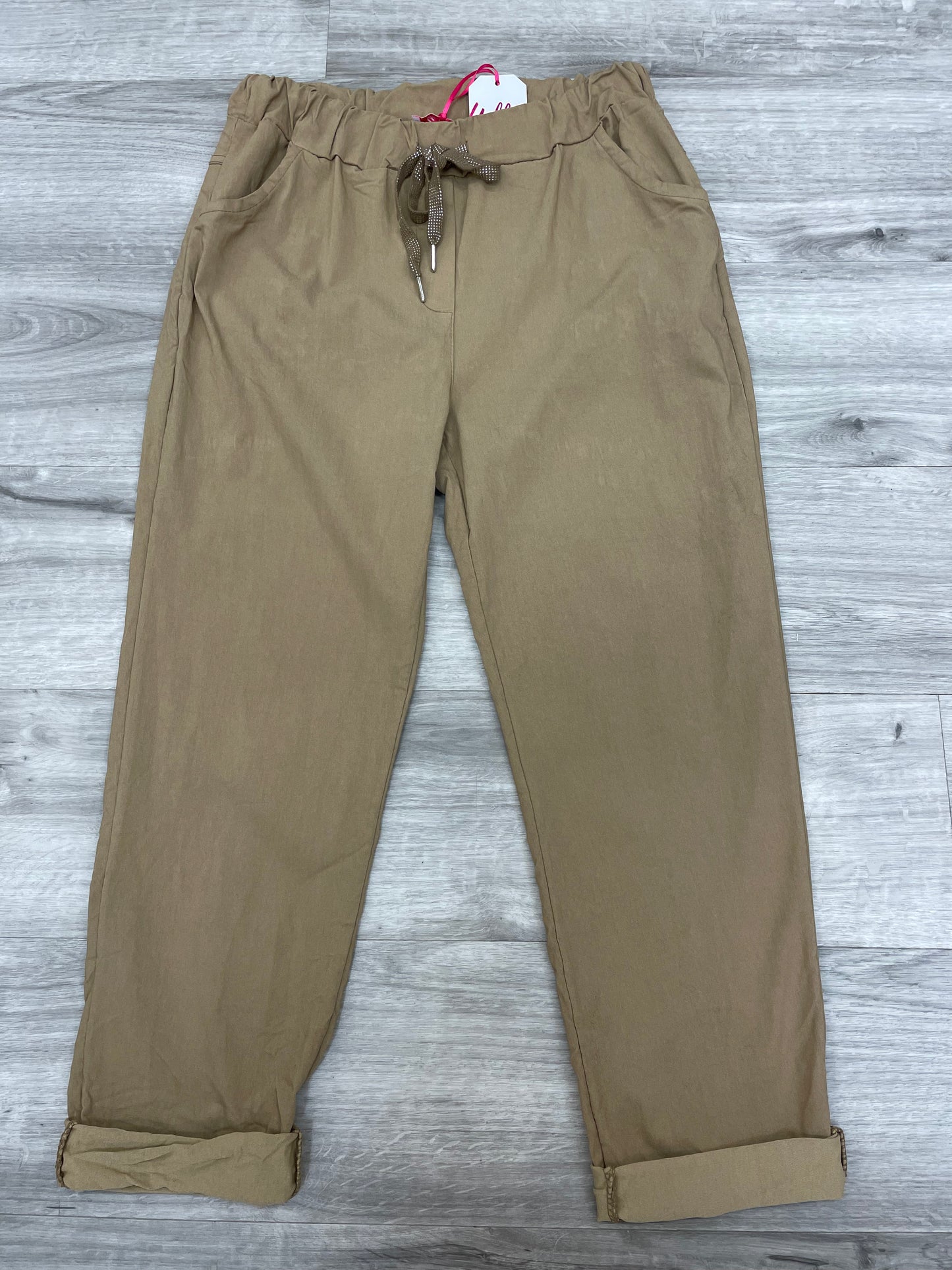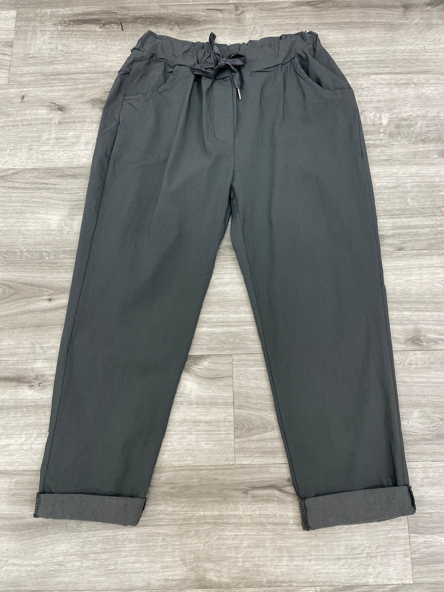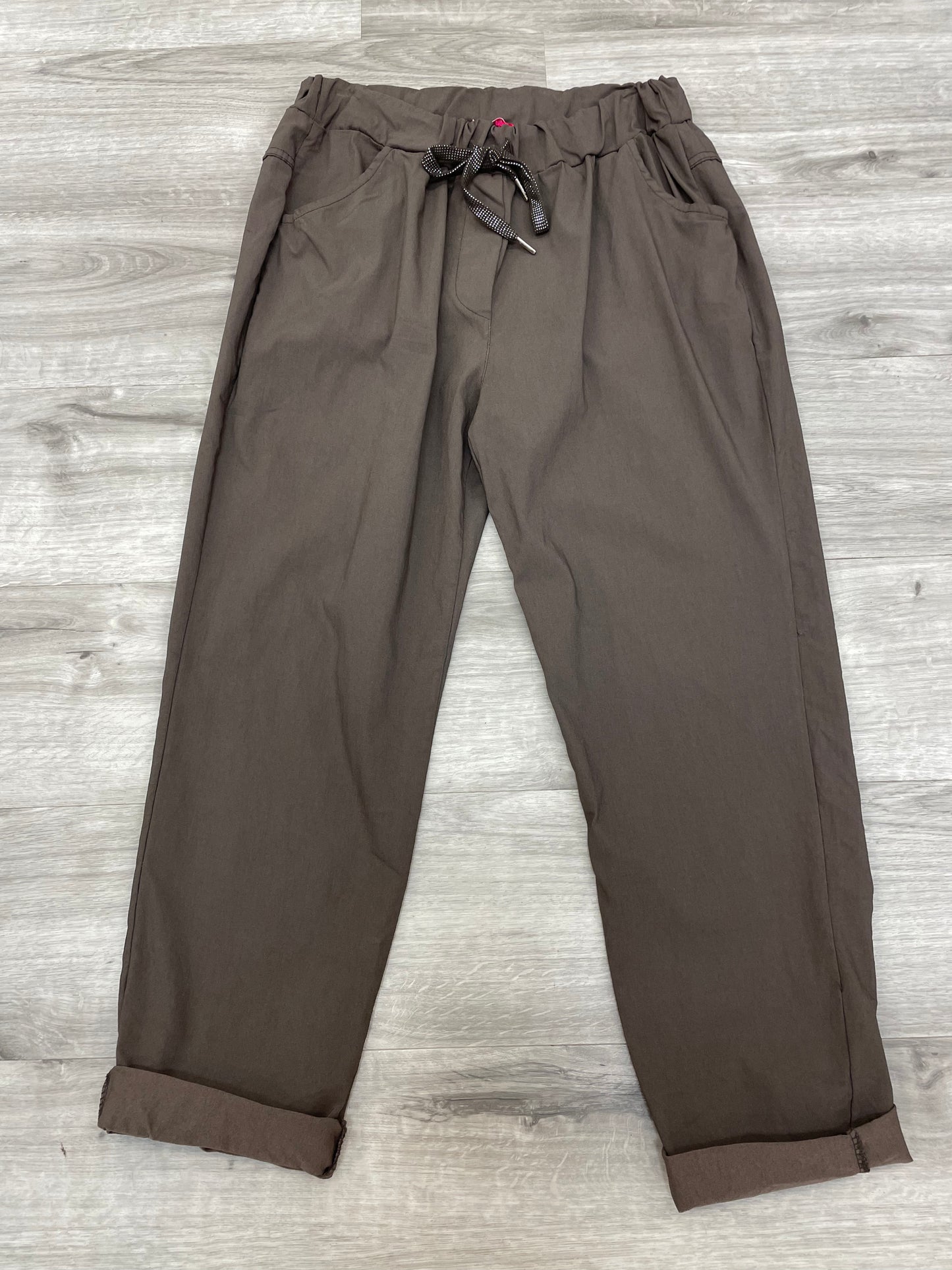 Drawstring waist & Tapered at the bottom