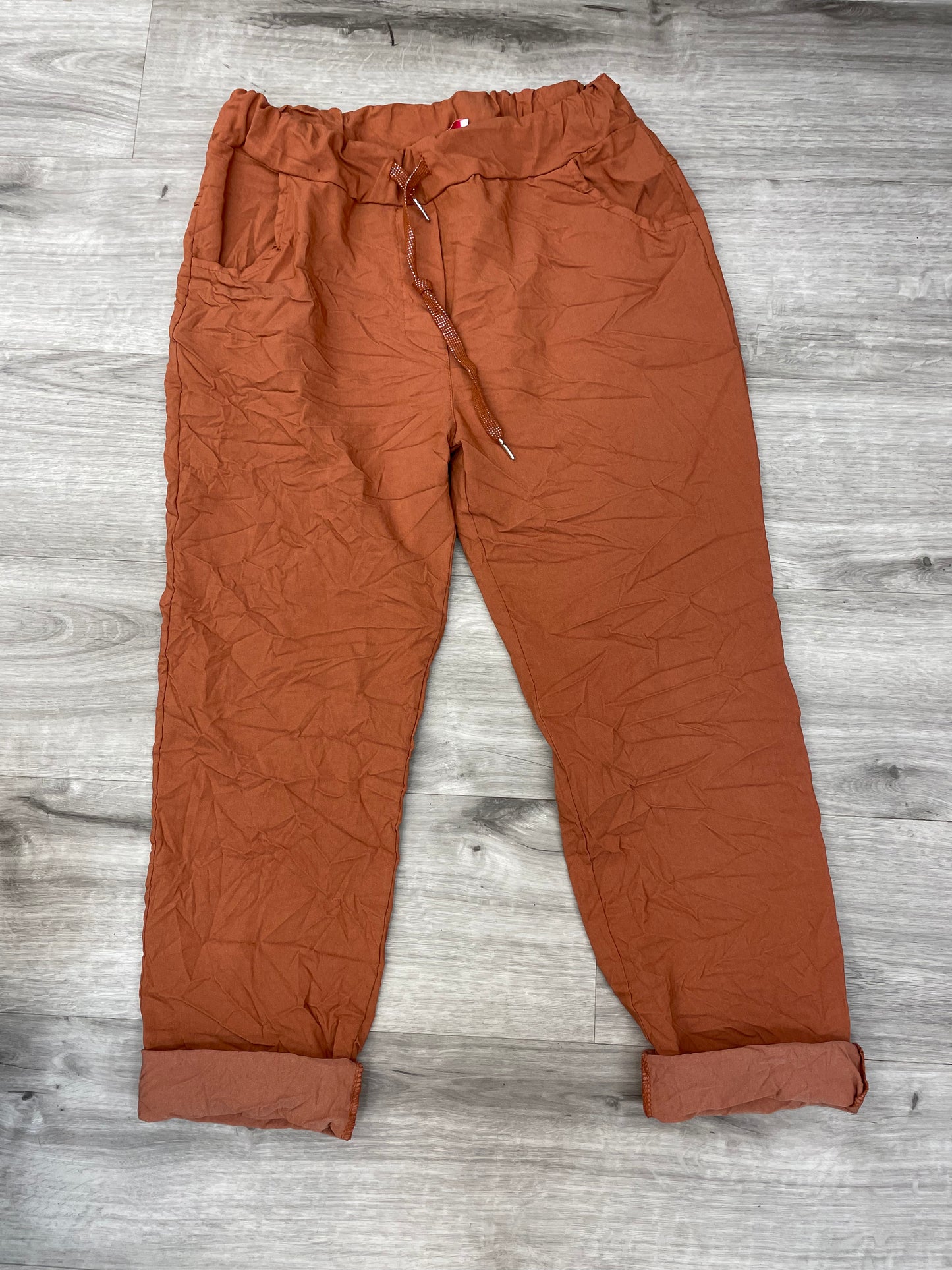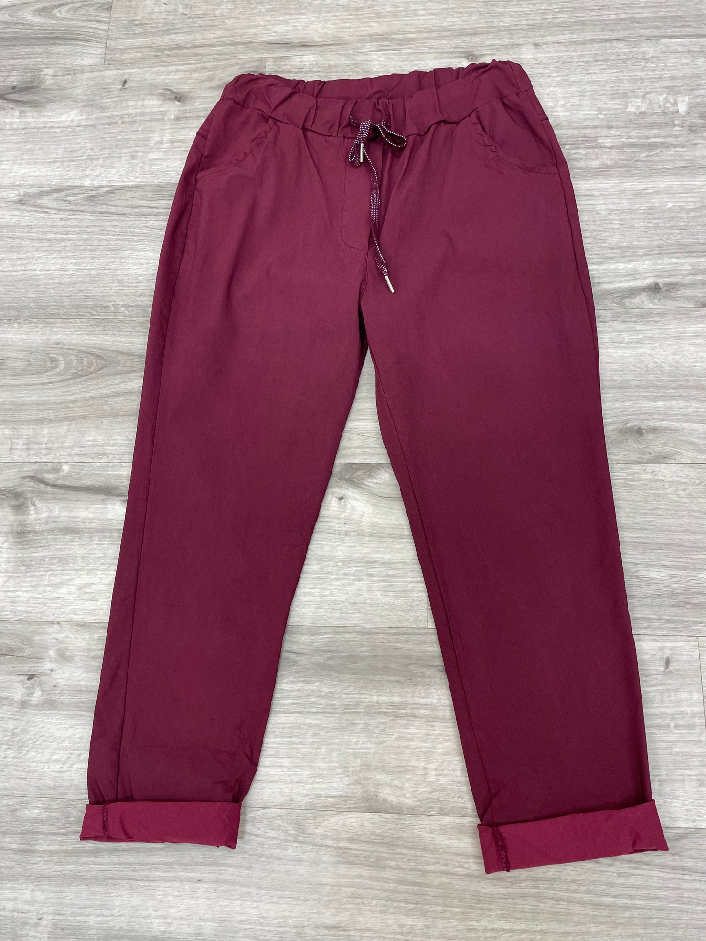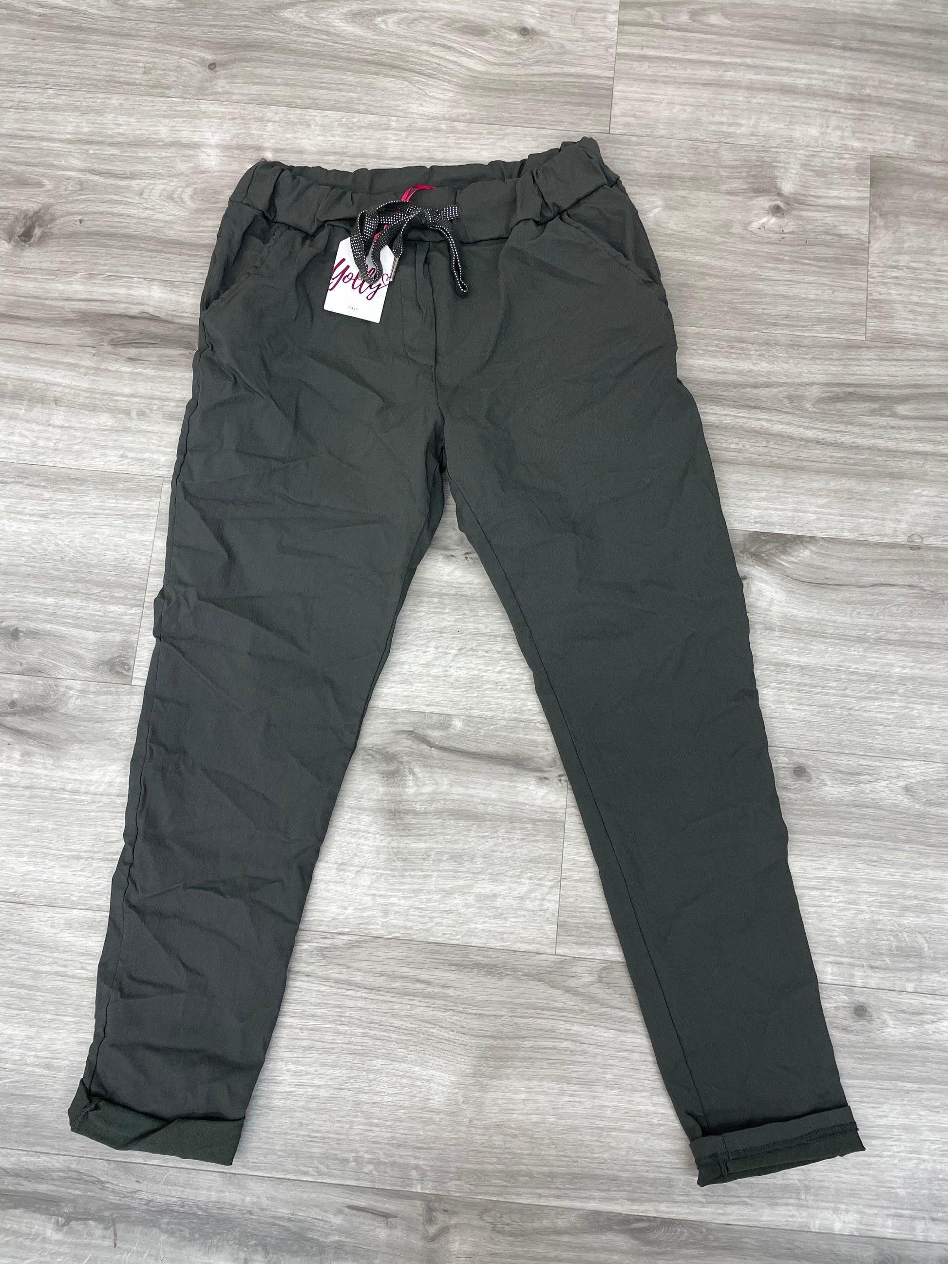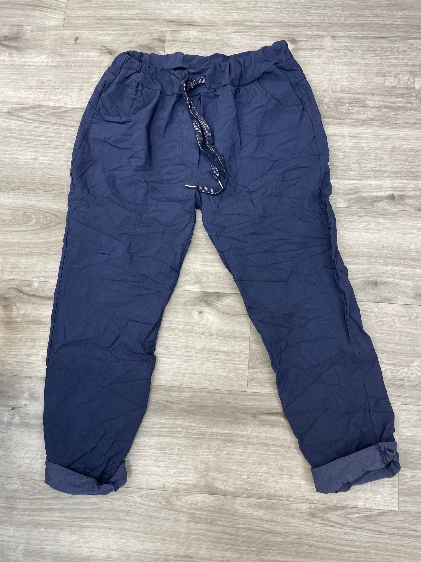 Drawstring waist & Tapered at the bottom