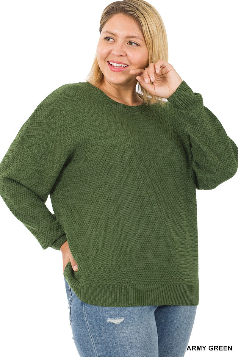 PLUS ROUND NECK BASIC SWEATER - MIDWEIGHT - GOOD QUILITY BASIC SWEATER TOTAL BODY LENGTH: 27", CHEST: 49" approx. - MEASURED FROM 1X * COLOR MAY VARY SLIGHTLY DUE TO MONITOR RESOLUTION